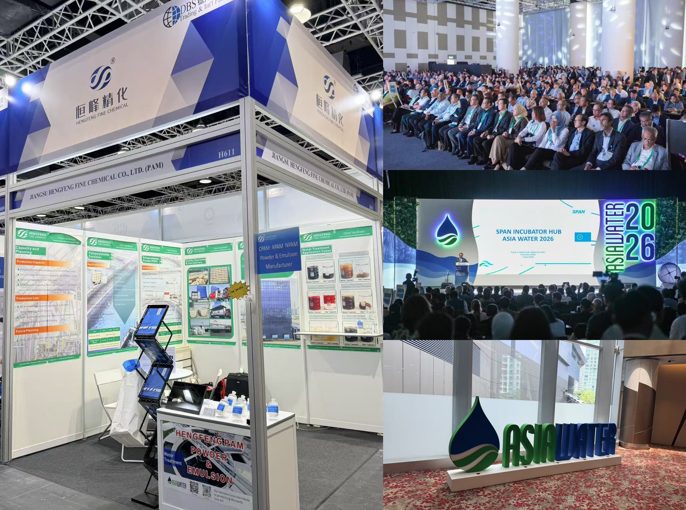 (KUALA LUMPUR, Malaisie, 9 avril 2026) — Jiangsu Hengfeng Fine Chemical Co., Ltd., l'un des principaux fabricants et fournisseurs chinois de produits chimiques de traitement de l'eau et de solutions polymères de haute qualité, a participé avec succès à la 14e édition de ASIE EAU 2026 , le principal événement de l'industrie de l'eau et des eaux usées de la région. L'exposition a eu lieu du du 7 au 9 avril à la Centre de congrès de Kuala Lumpur (KLCC) en Malaisie ASIAWATER.